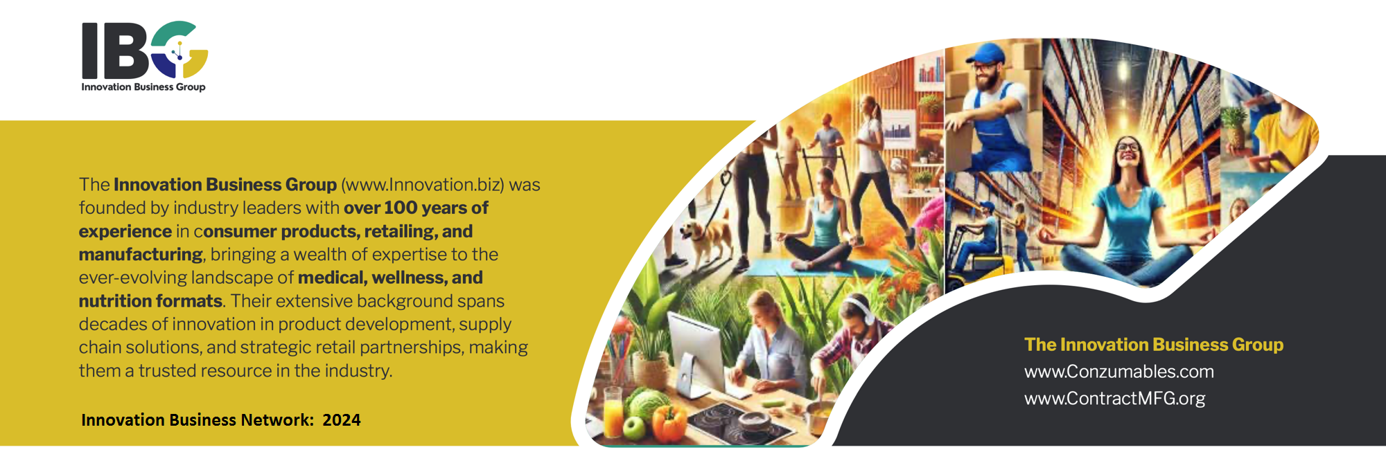 The Innovation Business Group (IBG) is an extension of the Contract Manufacturing Alliance (www.ContractMFG.org) which helps consumer brands (of all-sizes) with their contract manufacturing search and relationship needs. Our roster of contract manufacturers, co-packers and packagers is over 43,000.